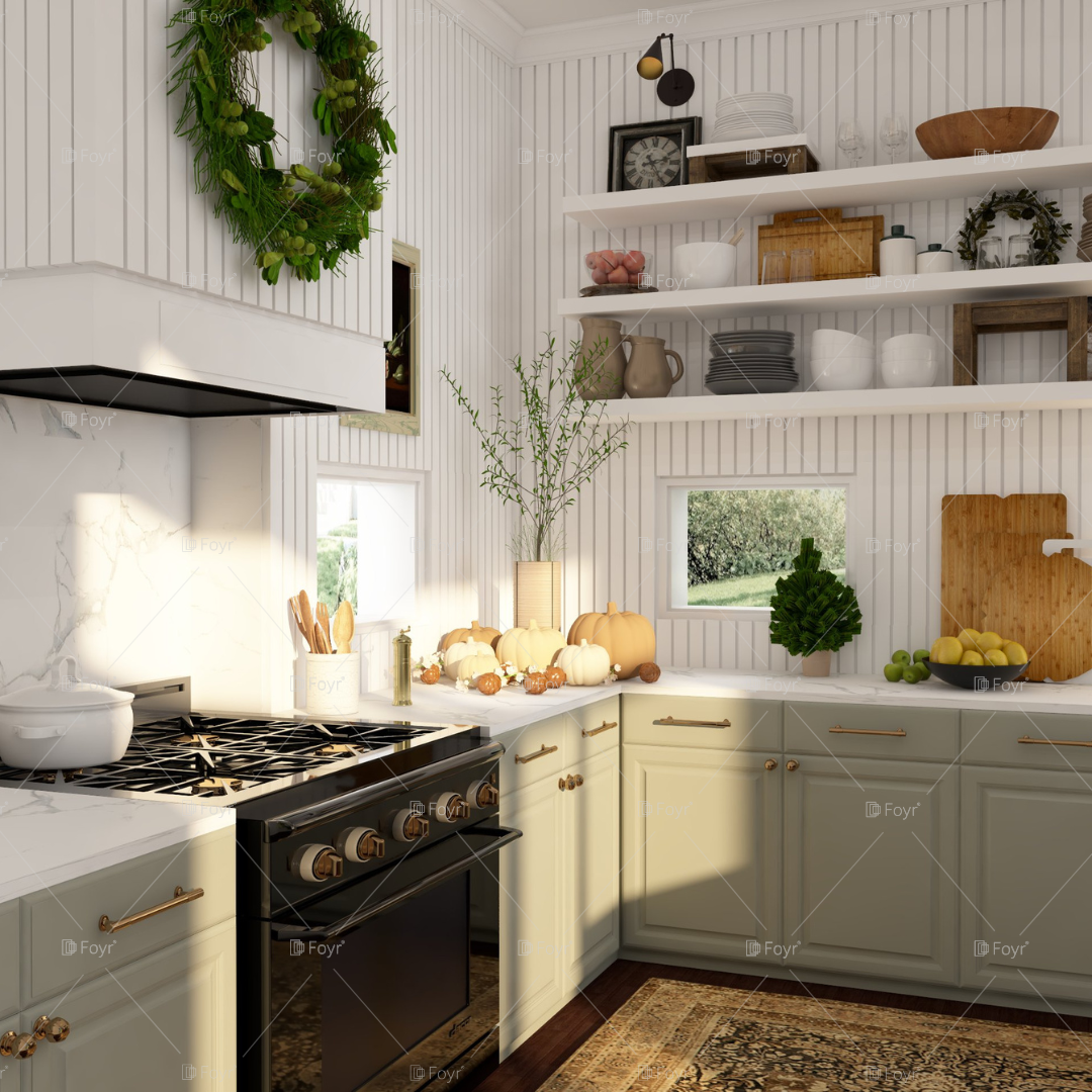Cozy Cottage Kitchen with Fall Decor and Open Shelving