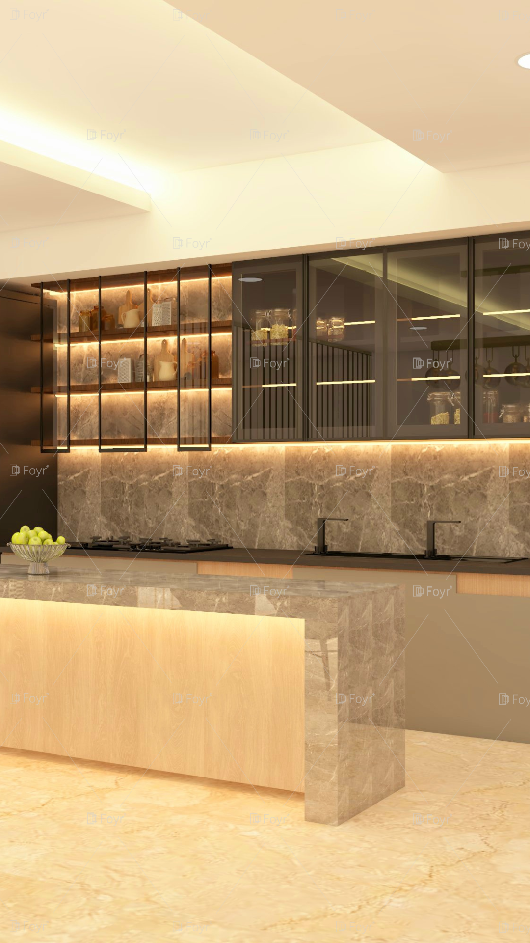 Luxury Modern Kitchen with Sleek Grey Cabinets and Marble Island