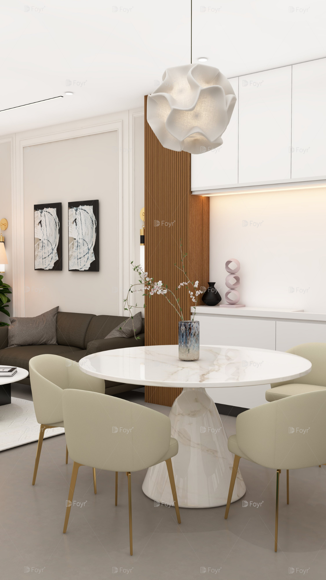 Sleek Minimalist Dining Nook with Sculptural Lighting