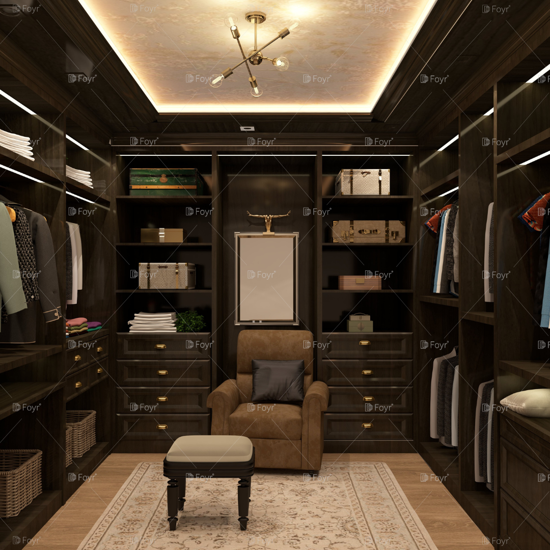 Classic Dressing Room with Vintage Armchair and Elegant Storage
