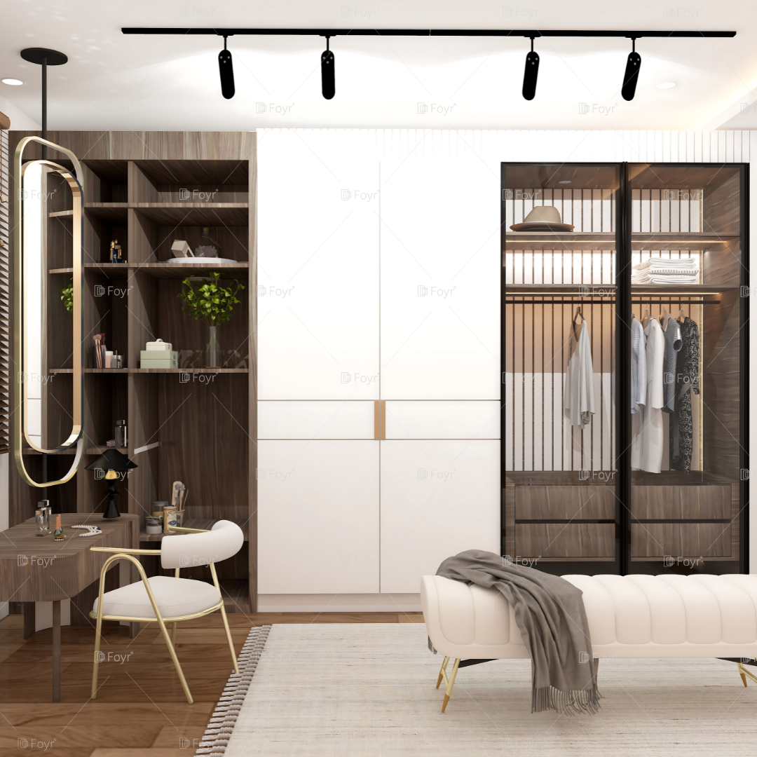 Modern Glam Walk-In Wardrobe with Vanity and Minimalist Design