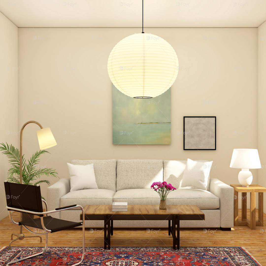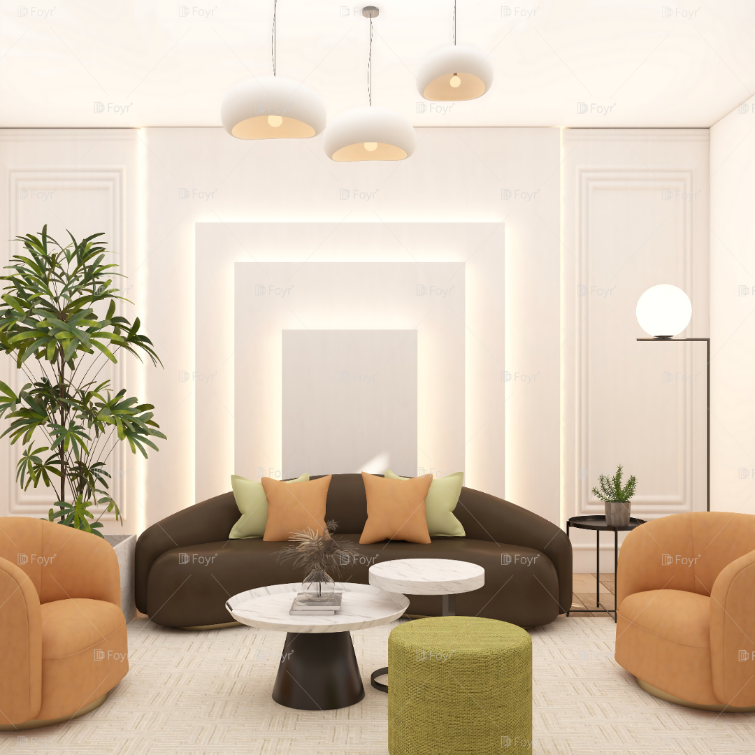 Modern Living Room with Sculptural Lighting and Soft Blues
