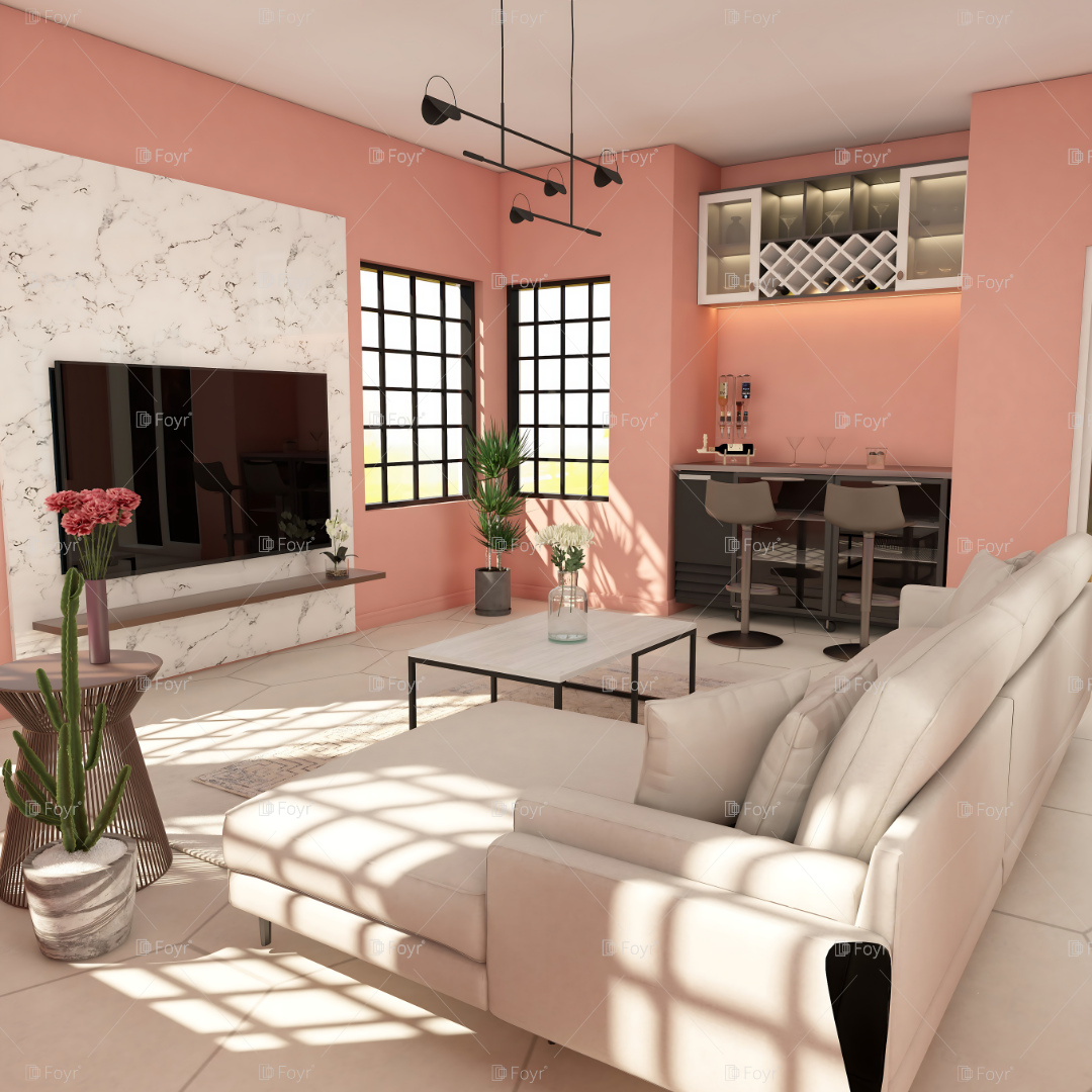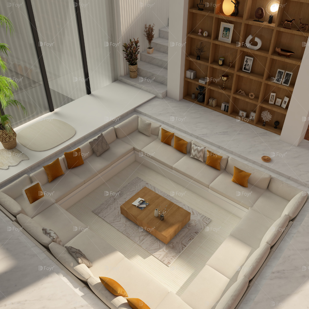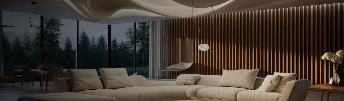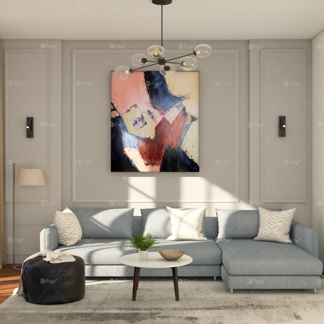 Modern Living Room with Sculptural Lighting and Soft Blues