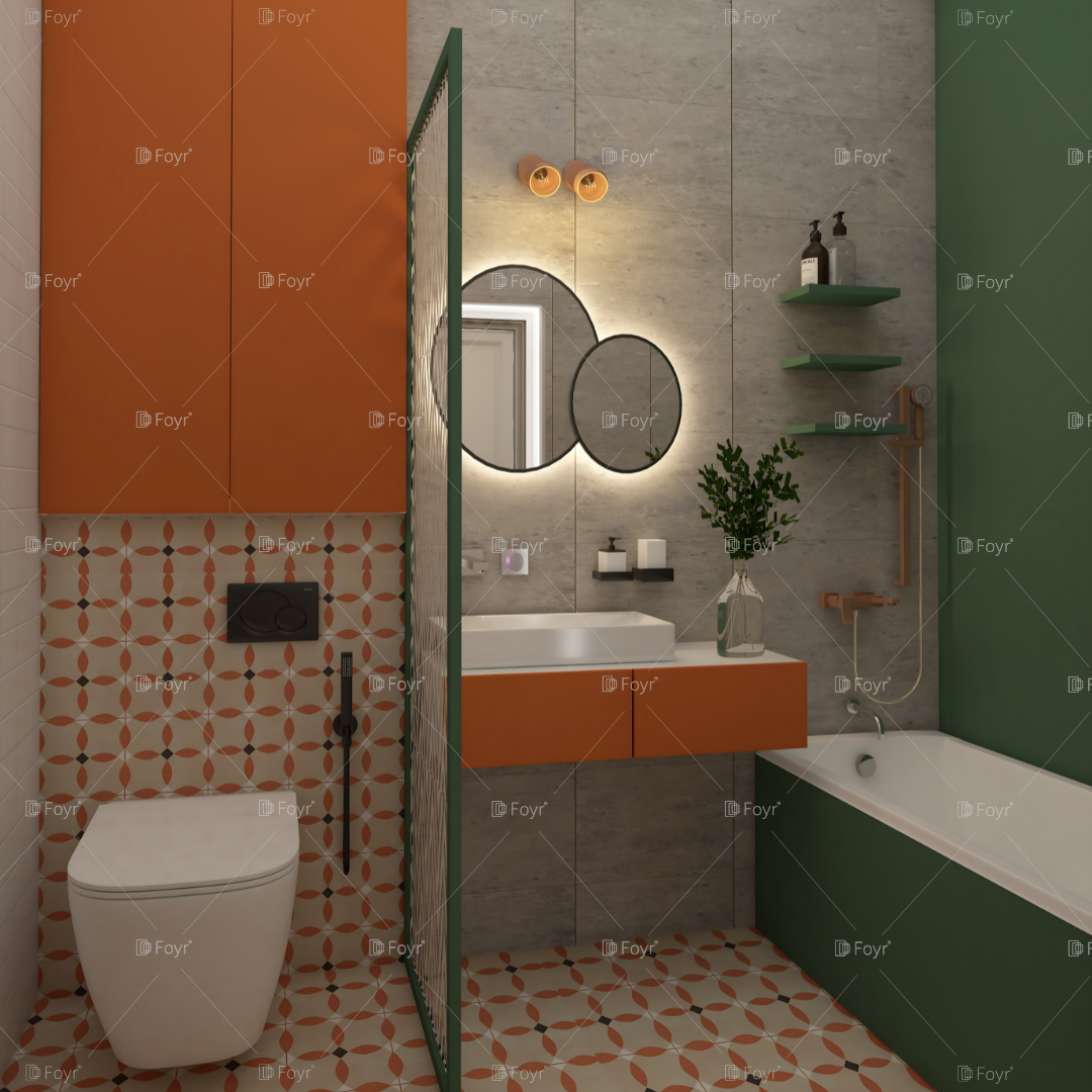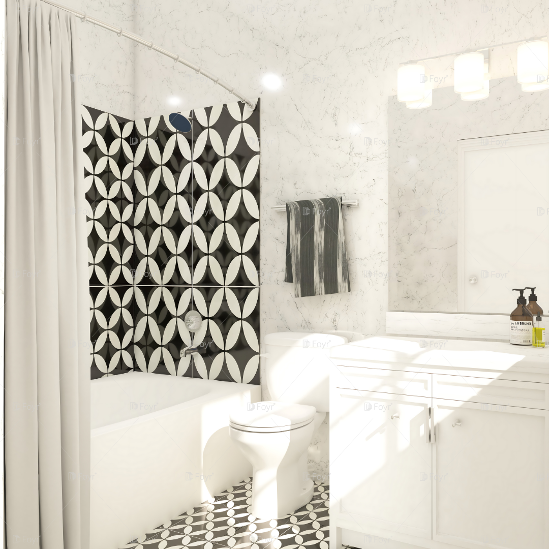 Farmhouse-Industrial Bathroom with Arched Shower Enclosure