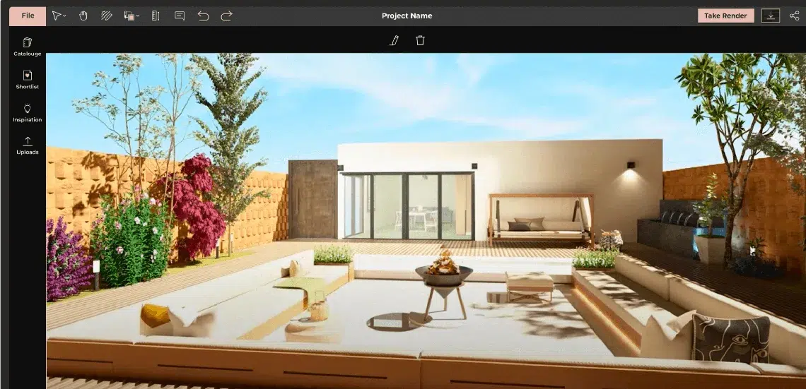 Add ready-made 3D models of furniture and landscaping elements, from outdoor sofas and pergolas to planters and flower beds. Experiment with different styles, materials, finishes and even lighting before committing to it in real life.