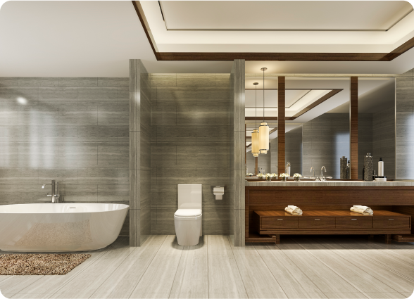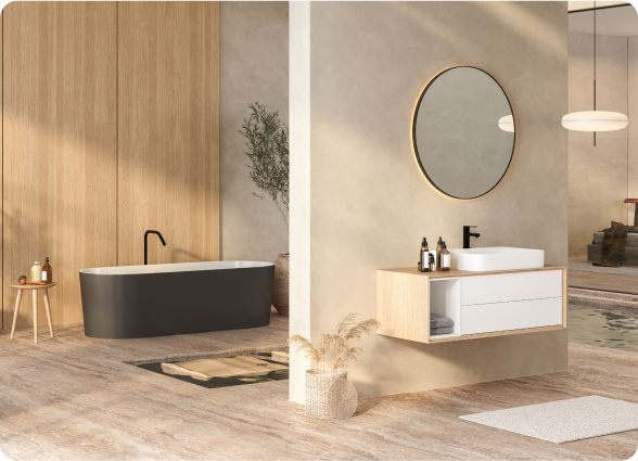 Instantly preview your bathroom layout design online in realistic 3D. Quickly adjust colors, textures, and finishes until your design is perfect, then share professional-quality renders easily.
