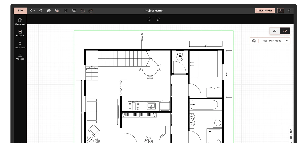Select a pre-designed template, upload an existing floor layout, or start from scratch in 2D mode. Add accurate dimensions using our app for floor layout for precision.