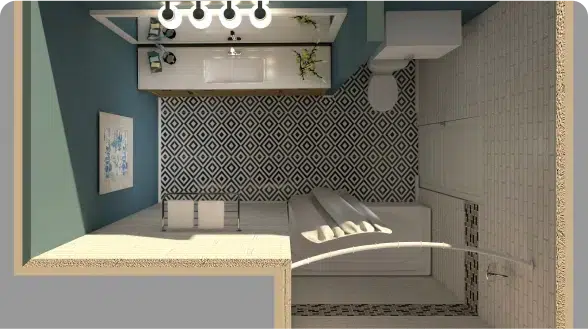 Switch to 3D floor plan creator mode for a realistic preview of your space. Fine-tune the design before finalizing with high-quality renders.
