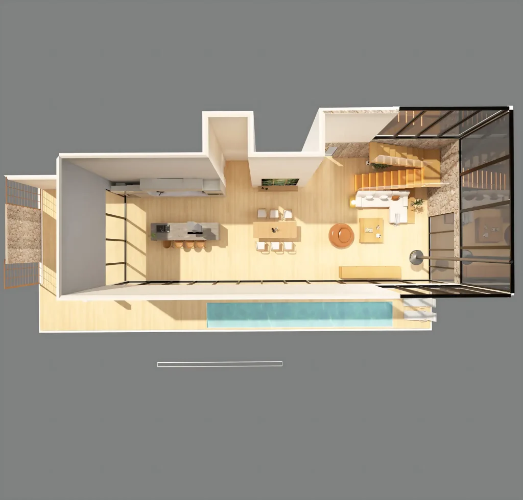 Best for: Apartments, lofts, townhouses, or any home with a narrow footprint where maximizing perceived space and flow is essential.